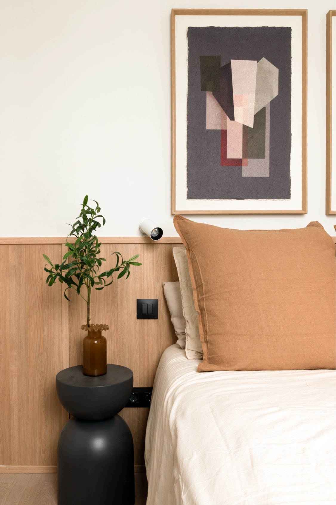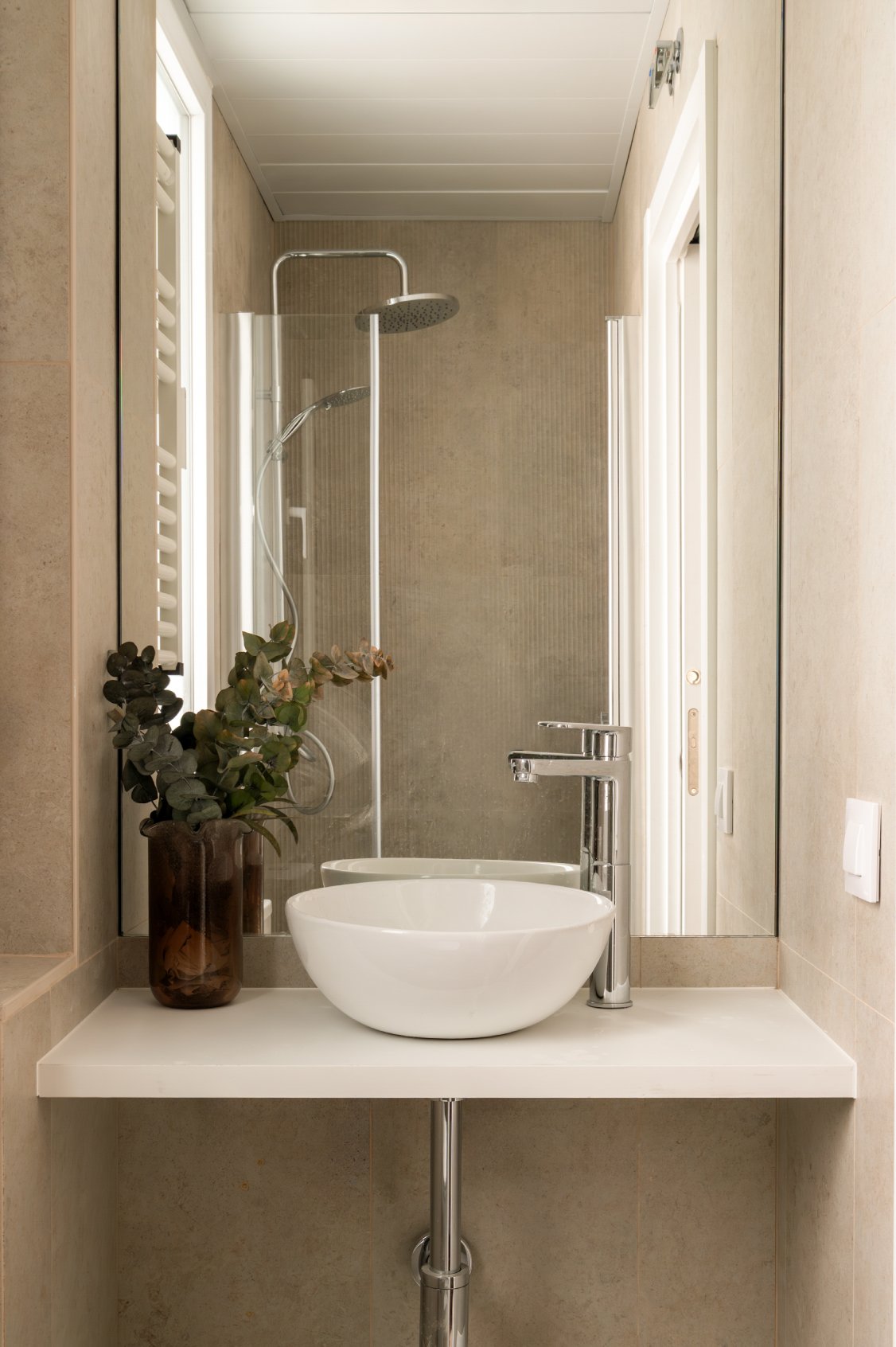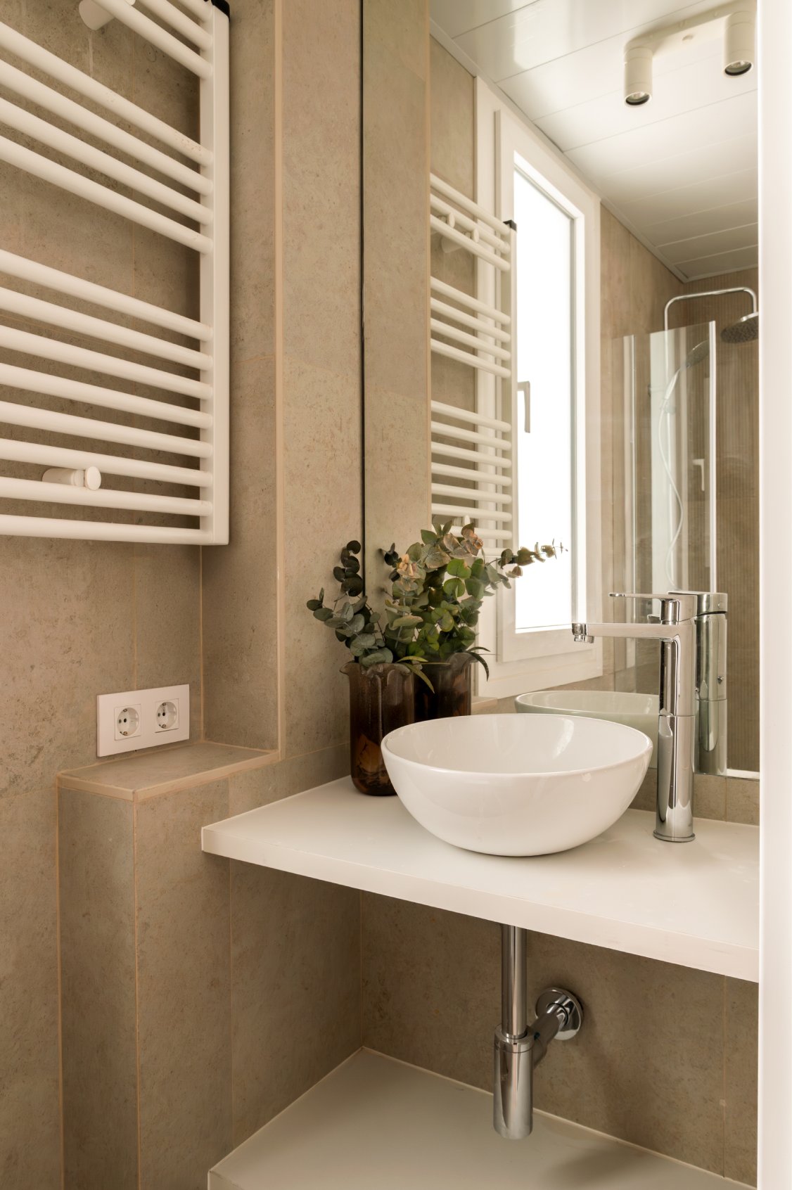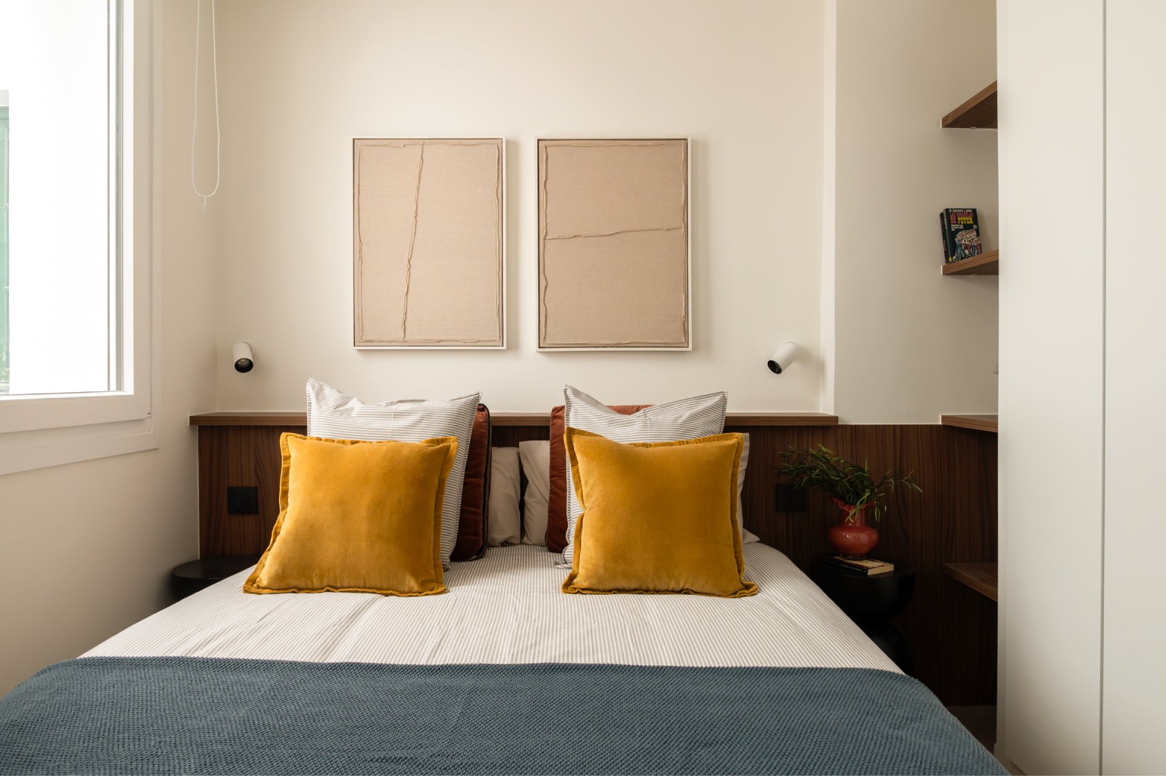 El recibidor da paso a un pasillo que conduce a la zona de descanso. Ambos dormitorios son dobles, cuentan con cama de matrimonio y destacan por su excelente capacidad de almacenaje gracias a los armarios empotrados. El dormitorio principal dispone de cuarto de baño en suite, mientras que un segundo baño, igualmente reformado, da servicio al dormitorio secundario y a las visitas