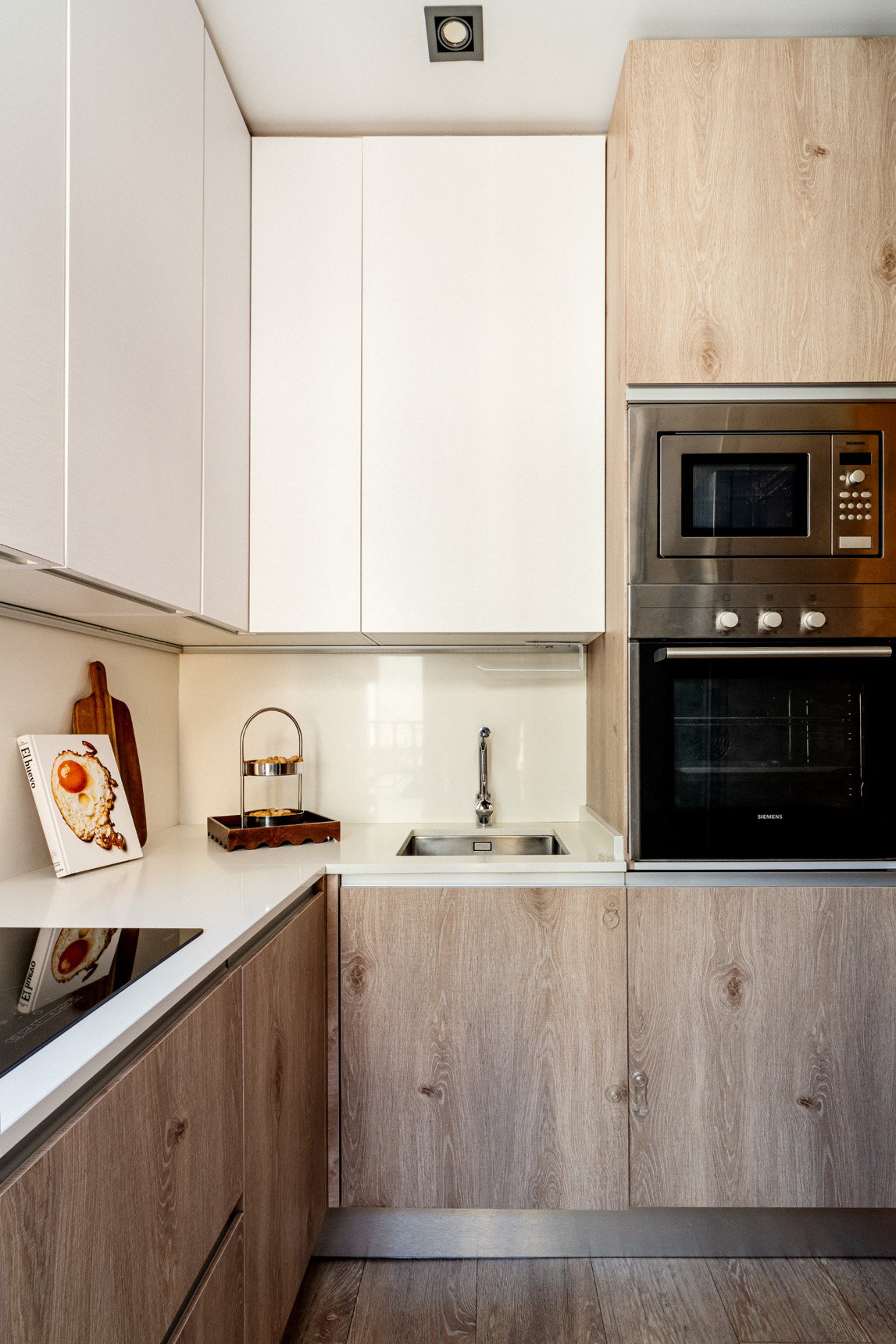 Junto al salón se encuentra la cocina con puerta corredera para tener la posibilidad de separarla del salón, está completamente equipada con grande y pequeño electrodoméstico, así como variado menaje.