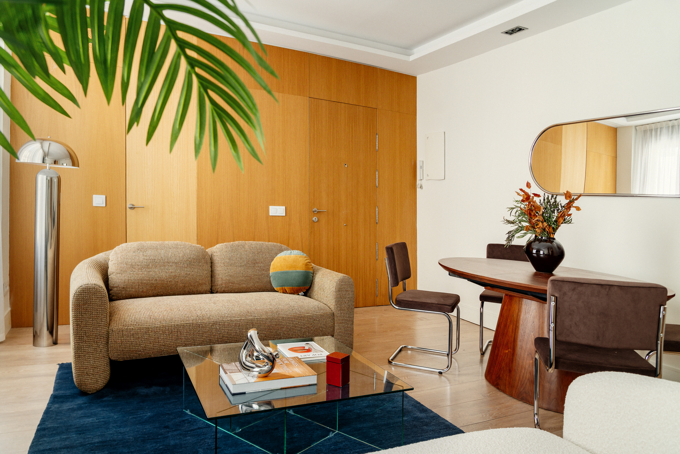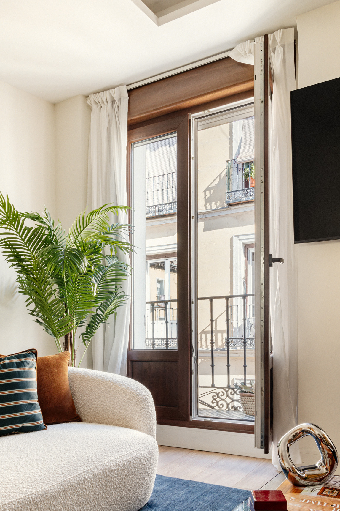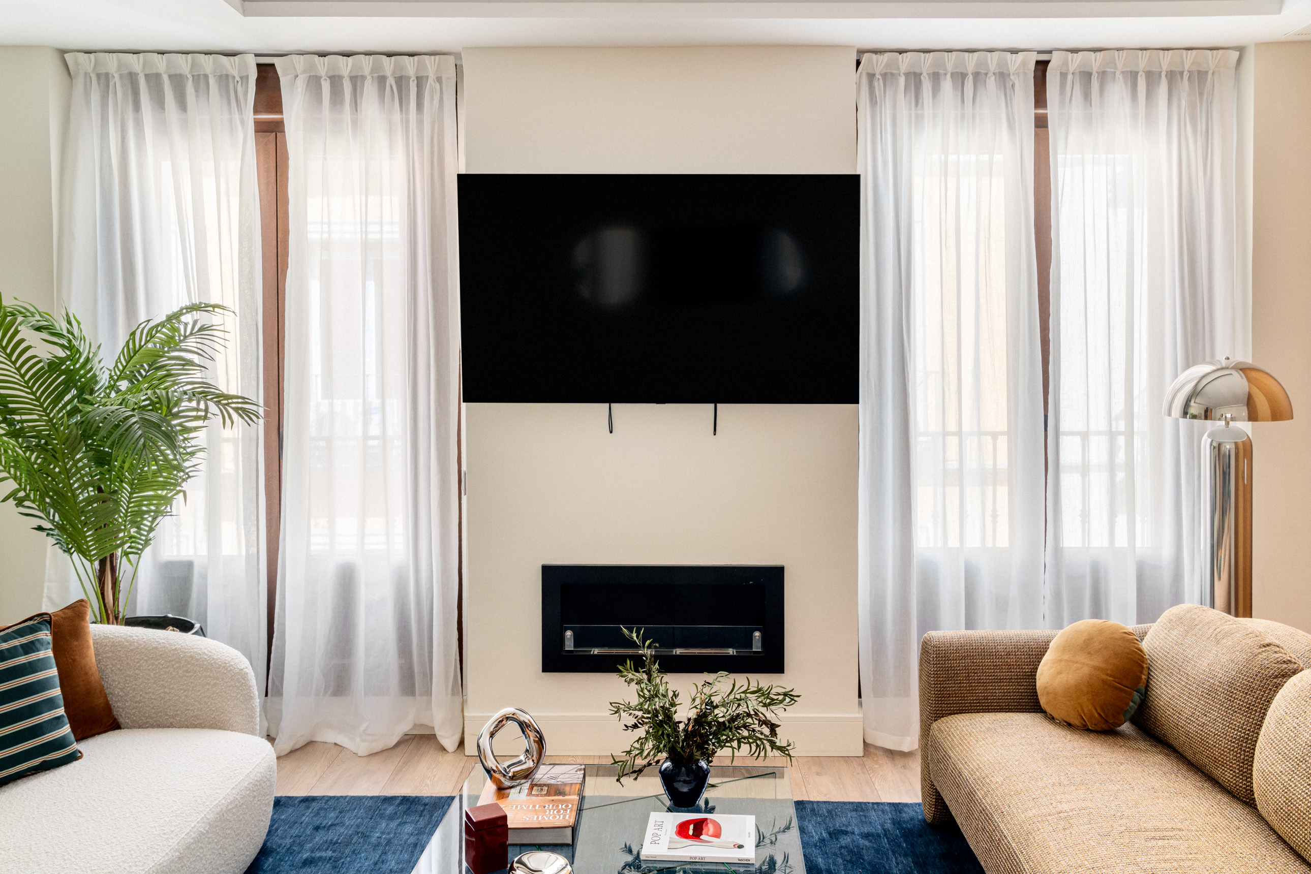 En pleno centro de Madrid, en el Barrio de Justicia, concretamente en la vibrante zona de Chueca, encontramos este magnífico y luminoso apartamento exterior, el cual ha sido completamente reformado y destaca por su estilo y funcionalidad. En sus 83 m2 de superficie, tiene capacidad para alojar a 6 personas, puesto que dispone de 3 dormitorios dobles y 2 cuartos de baño completos.