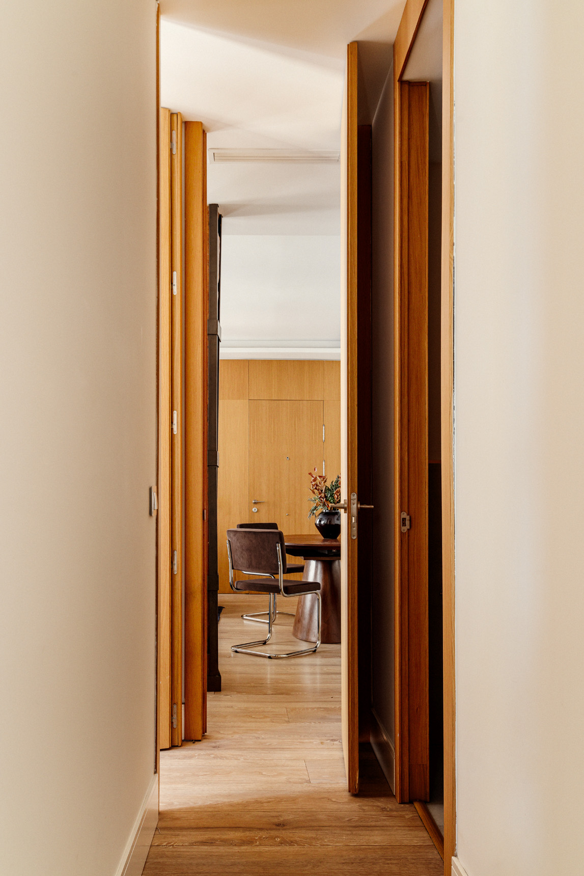 A continuación, se ubica el comedor, presidido por una gran mesa que puede acoger cómodamente a 4 comensales. Completa esta estancia la confortable zona de estar. Gracias a los dos balcones de los que dispone, la luz exterior inunda cada rincón.