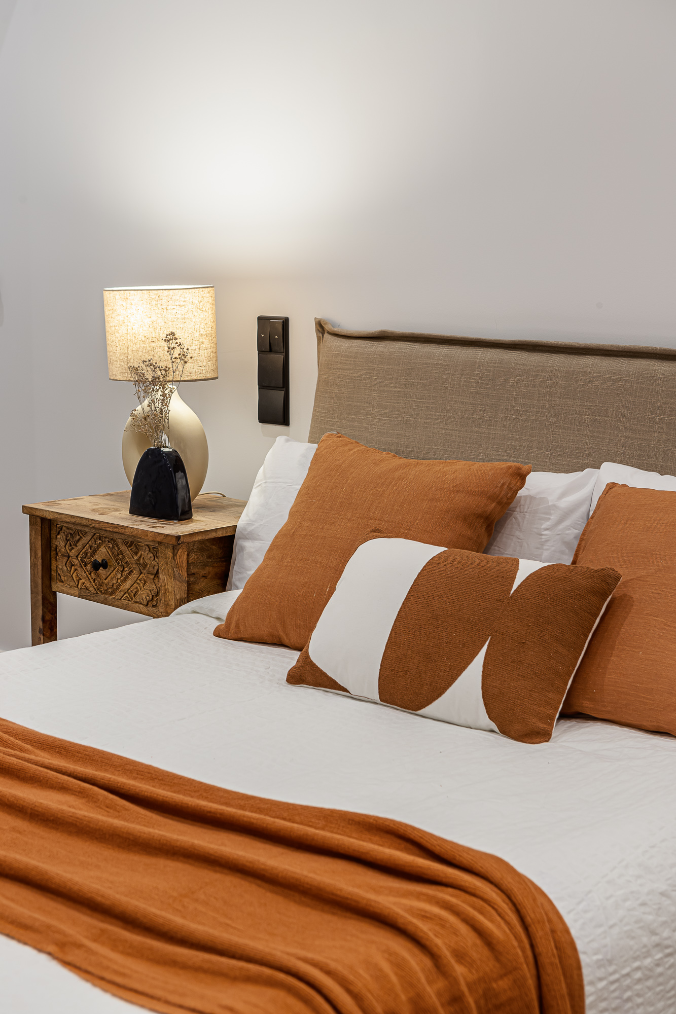 La distribución de este apartamento ha sido convenientemente diseñada para aprovechar al máximo el espacio. Accedemos a la vivienda y un hall nos guía hacia el primer dormitorio, que dispone de una amplia cama matrimonial, vestidor y cuarto de baño en suite.