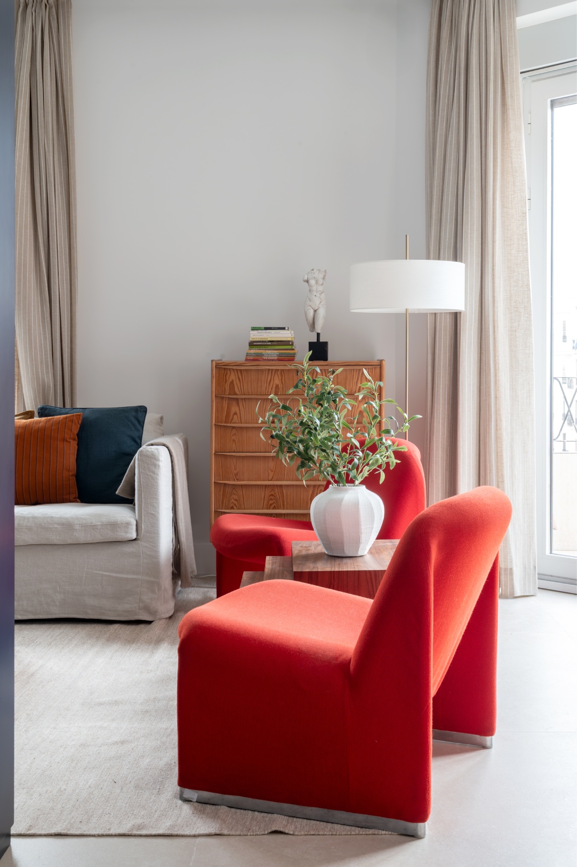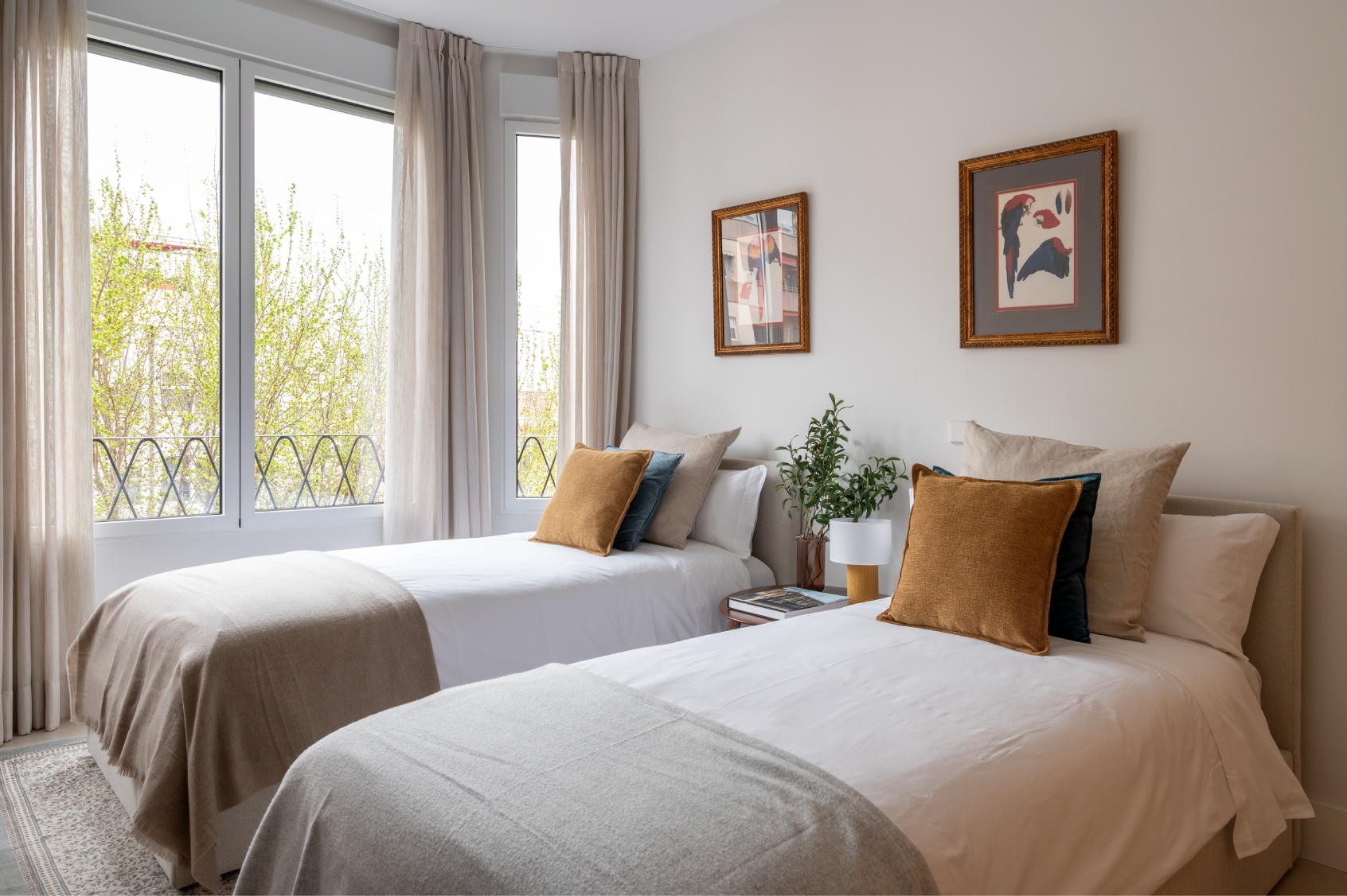 Desde la zona de día se accede a un balcón amueblado, un rincón privilegiado para relajarse al aire libre disfrutando de las vistas a la arquitectura clásica del barrio.
