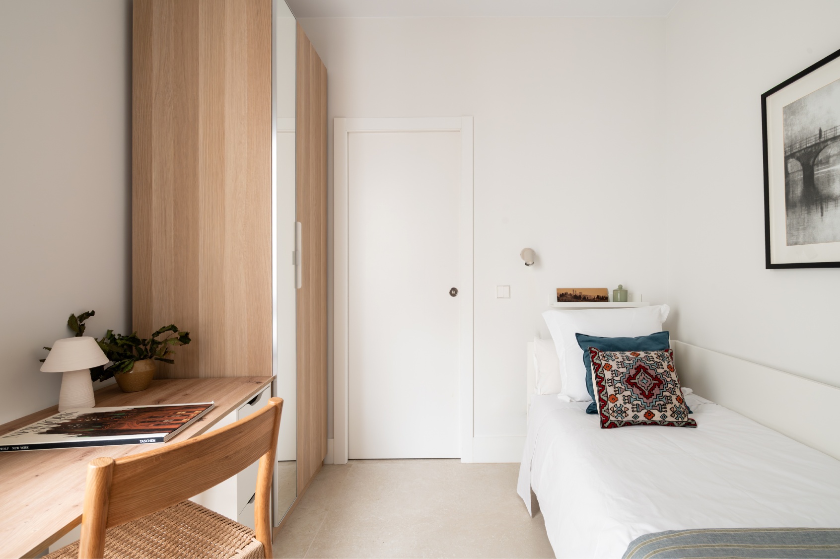 El tercer dormitorio ofrece una cama individual, armarios empotrados, una práctica zona de escritorio junto a la ventana y su propio cuarto de baño en suite.
