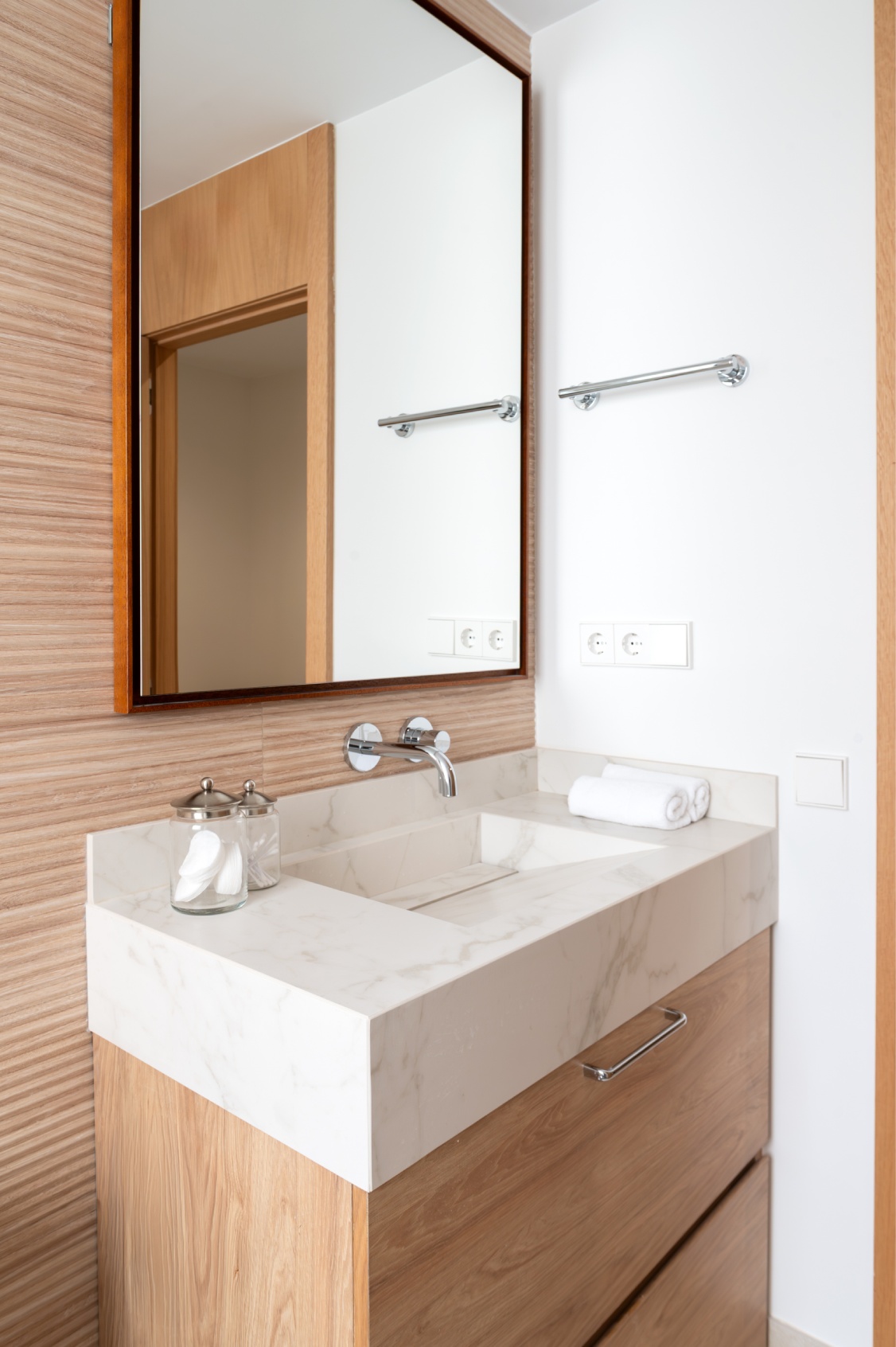 El área de descanso ha sido inteligentemente distribuida para garantizar la privacidad y el descanso absoluto, albergando tres dormitorios y tres cuartos de baño.