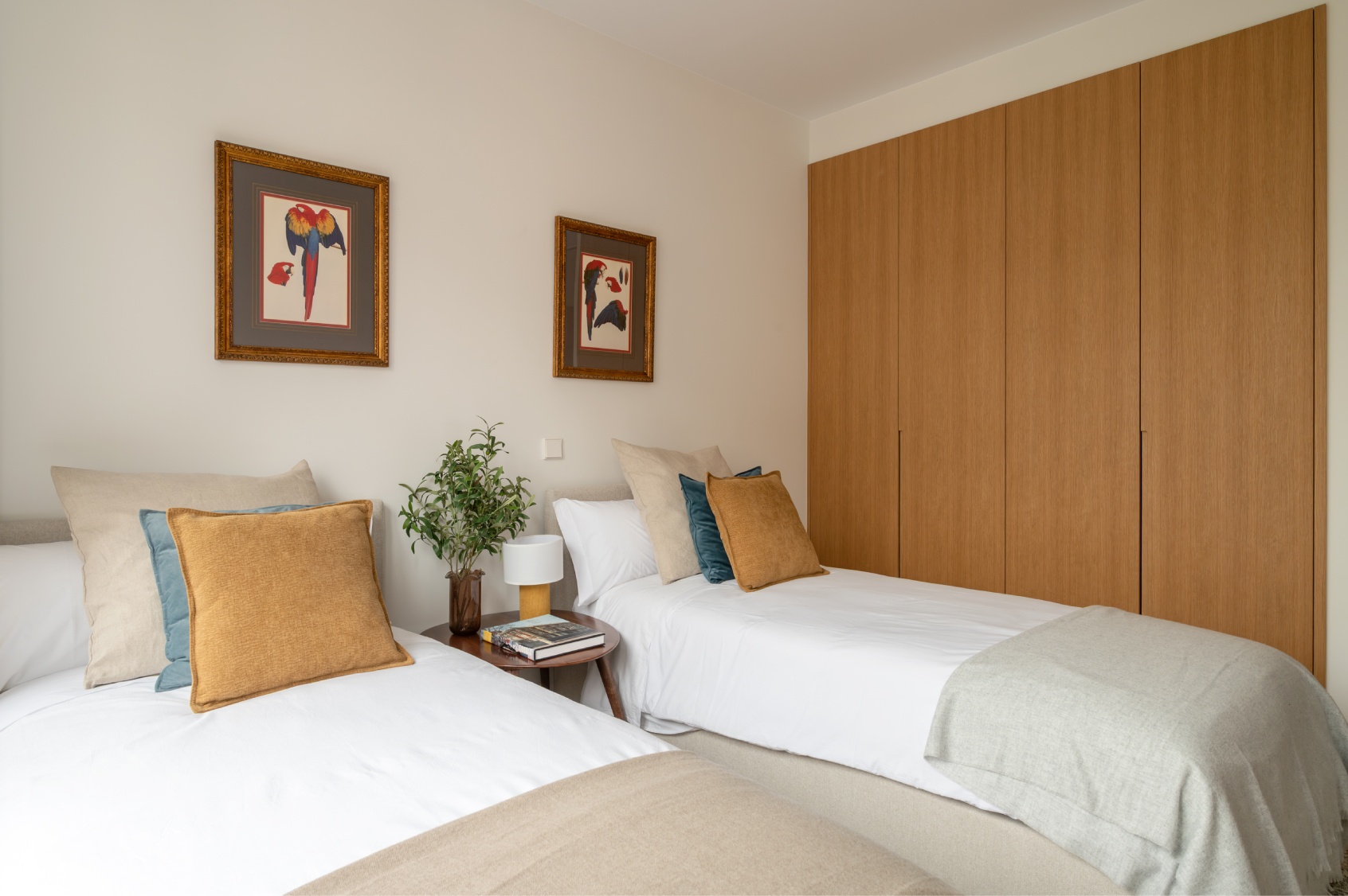 El segundo dormitorio, también de generosas dimensiones, está equipado con dos confortables camas individuales y amplios armarios empotrados. Justo enfrente, accesible desde el pasillo, se ubica un cuarto de baño completo que da servicio tanto a esta estancia como a las visitas.