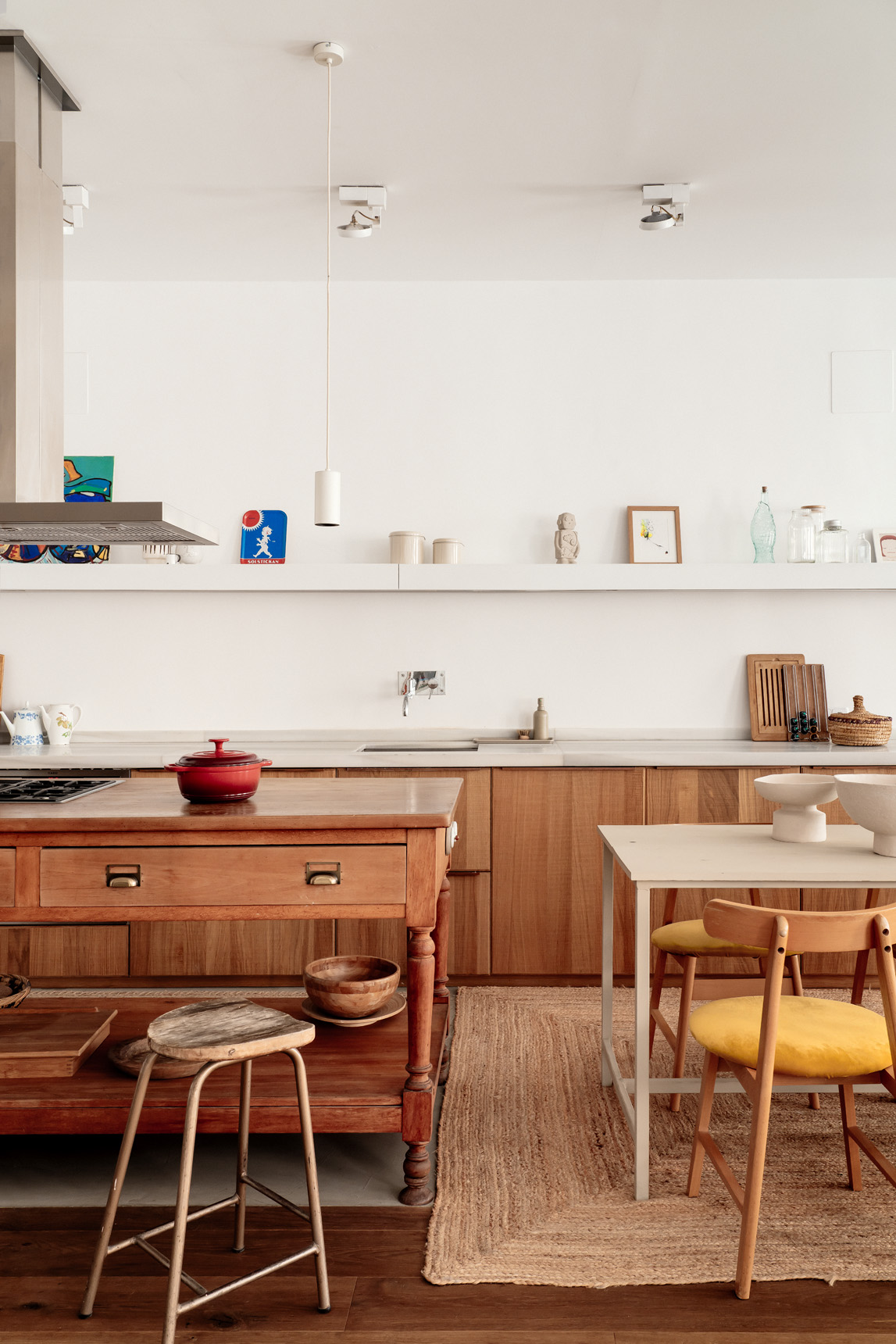 La zona social está compuesta por un precioso y cómodo salón, una práctica zona de trabajo o estudio, el comedor - con capacidad de acoger cómodamente a 6 comensales - y la cocina, de planta abierta, la ha cual sido equipada hasta el último detalle con grande y pequeño electrodomésticos y variado menaje.