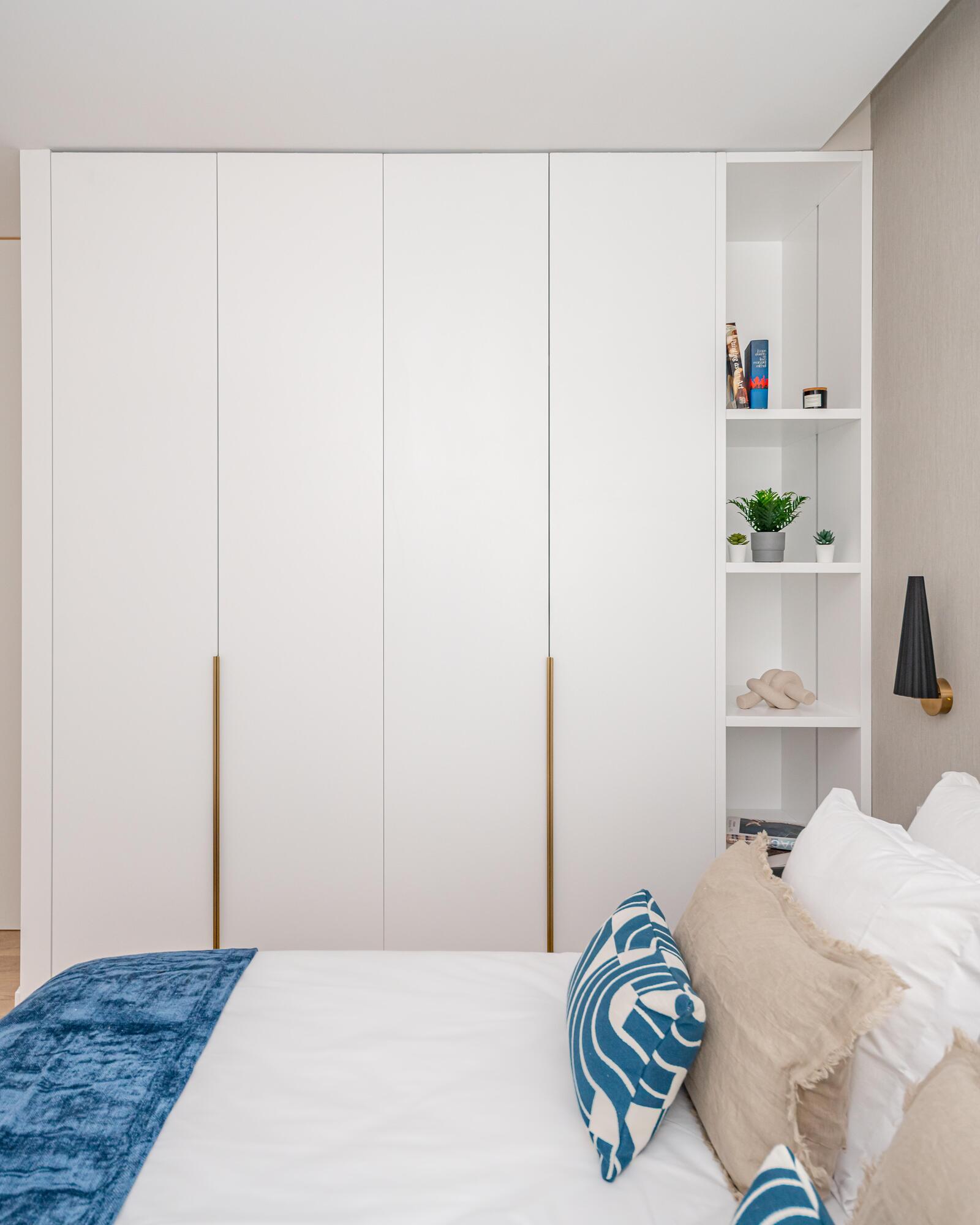 El dormitorio principal, situado junto al salón, dispone de una amplia cama matrimonial, numerosos armarios empotrados y un cuarto de baño ensuite.