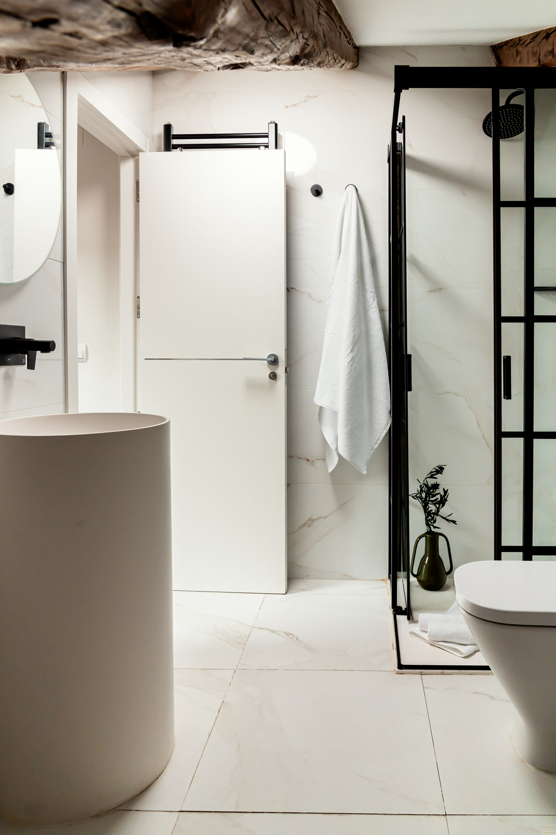 Un cuarto de baño completo da servicio a este dormitorio, así como a las visitas.