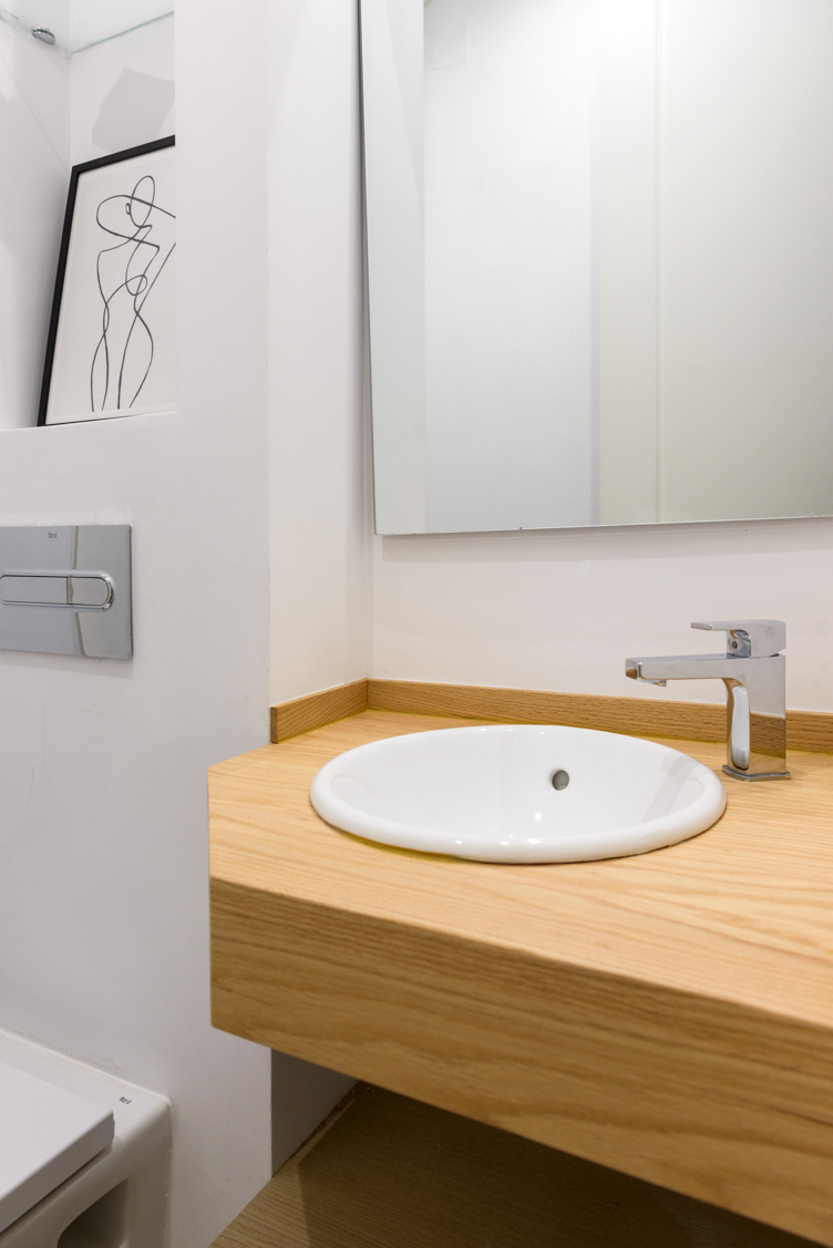 Un aseo junto a la cocina y al hall recibidor da servicio a las visitas.