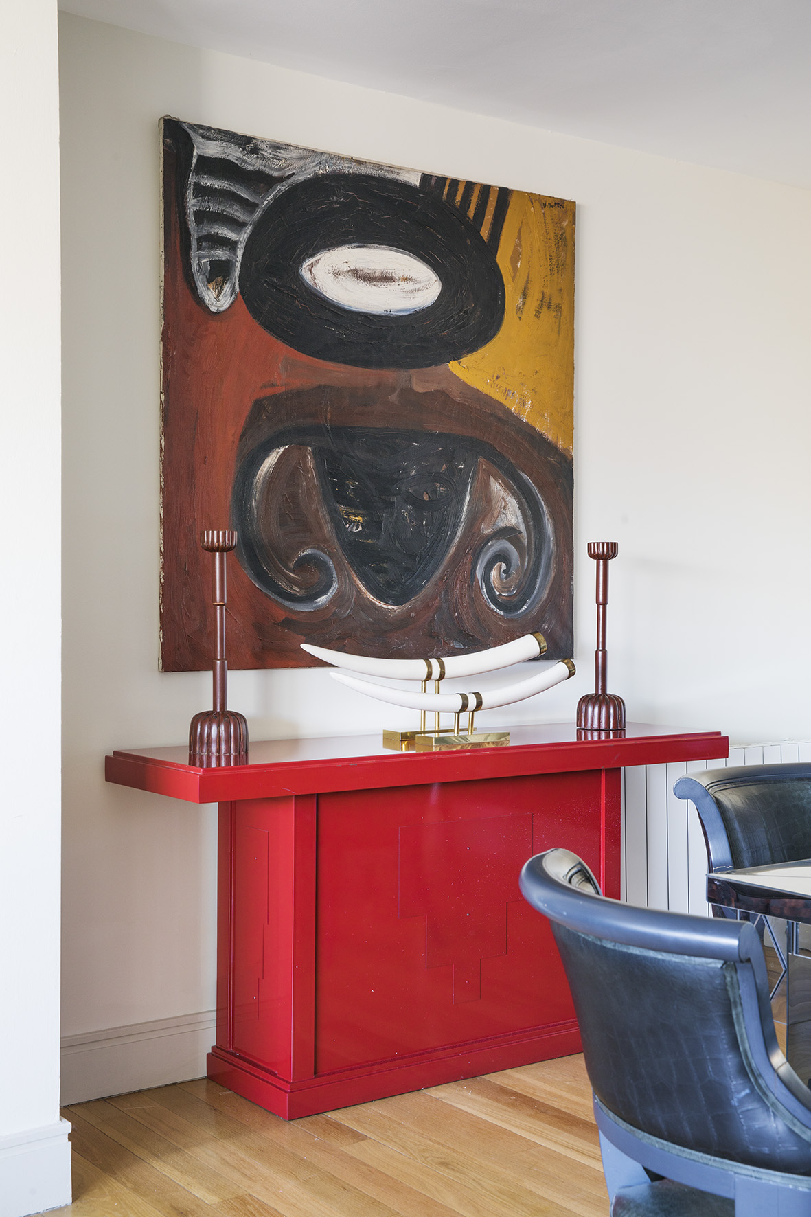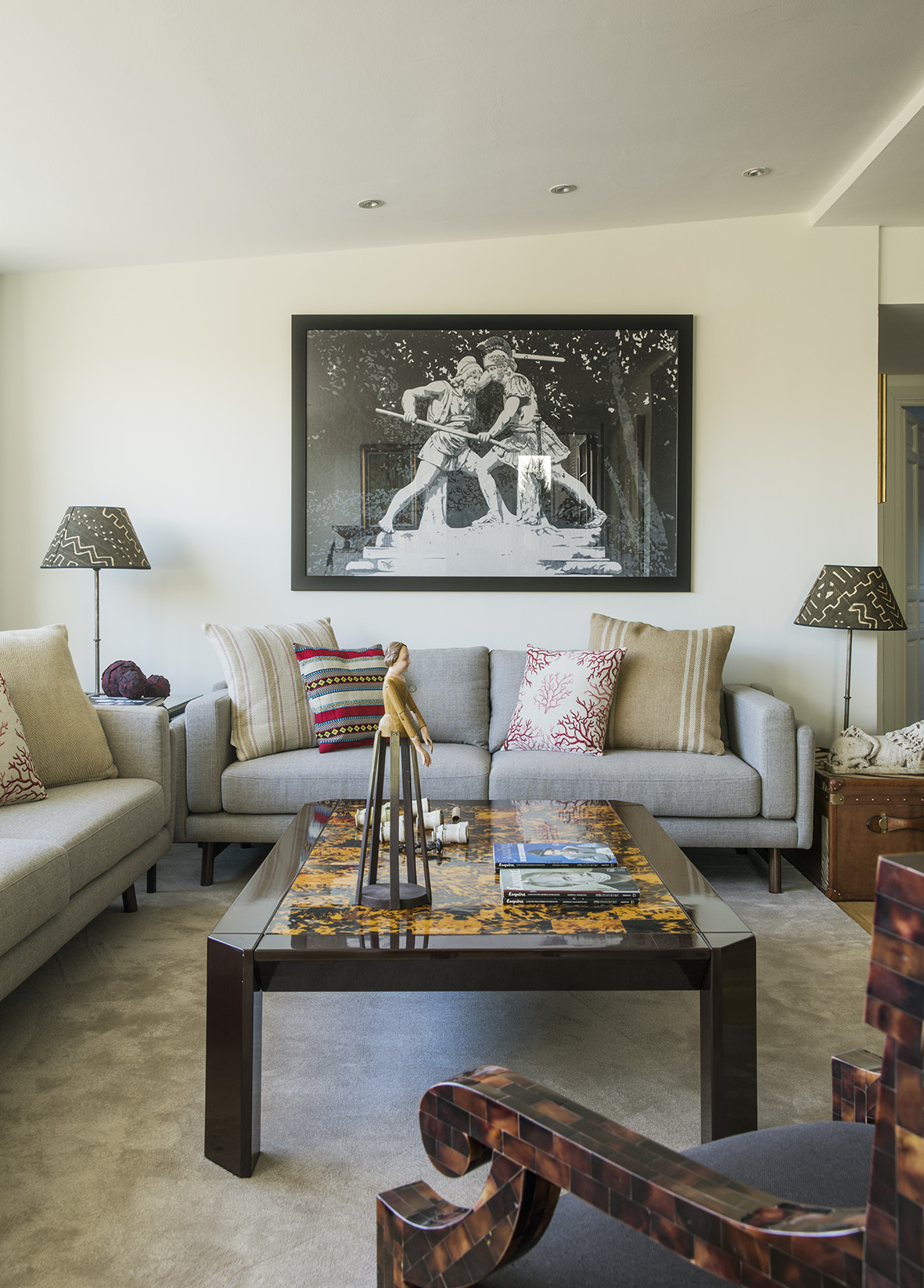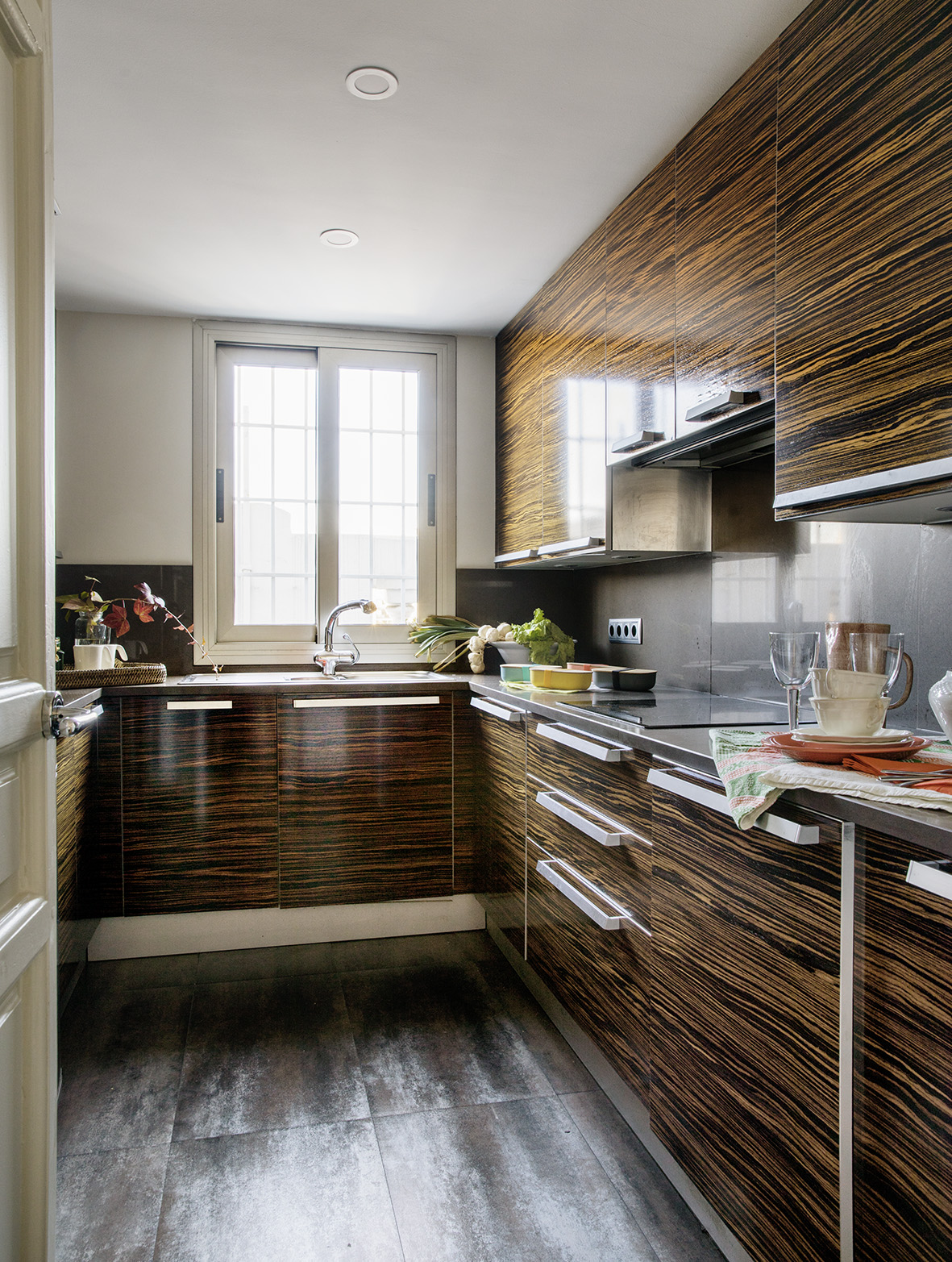 A la izquierda, unos escalones conducen a un acogedor cuarto de estar acristalado a modo de invernadero, antesala del gran tesoro de la casa: una espectacular terraza, con vistas únicas del Paseo del Prado, con el Parque del Retiro al fondo. Su gran tamaño ha permitido organizar dos ambientes, la zona de estar al fondo y el comedor en primer lugar, en torno a una imponente mesa de hierro y cristal.