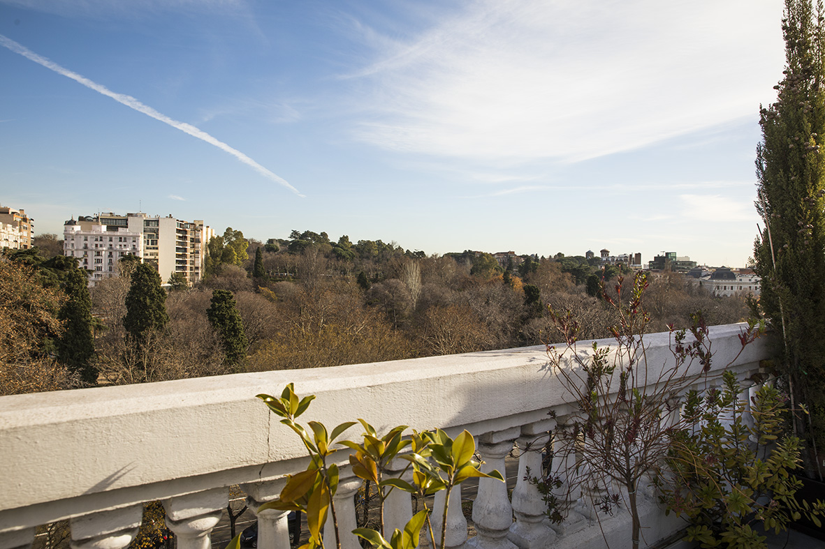 Imponentes las vistas que se disfrutan desde el salón y la terraza, con el Museo del Prado y el Jardín Botánico justo al otro lado del Paseo.