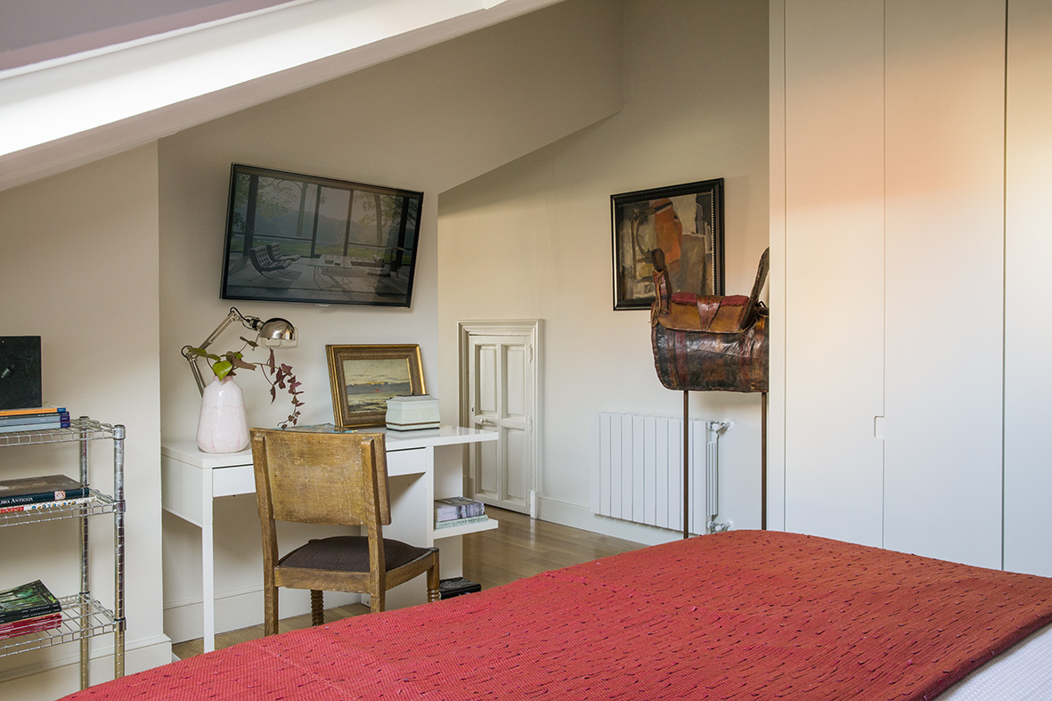 El dormitorio de invitados cuenta con cama king size, que puede dividirse en dos camas individuales bajo petición, y con zona de estudio.