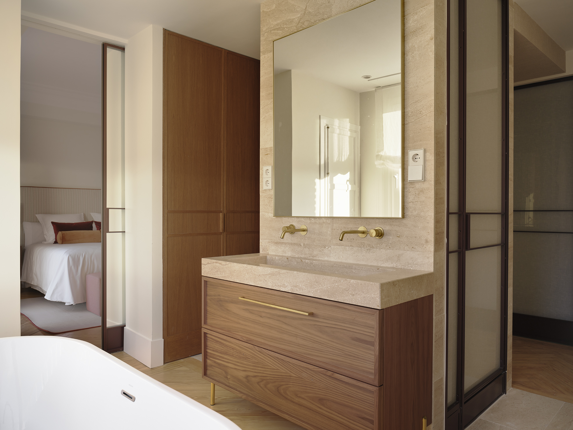 Un elegante pasillo nos guía hacia la zona privada de la vivienda.