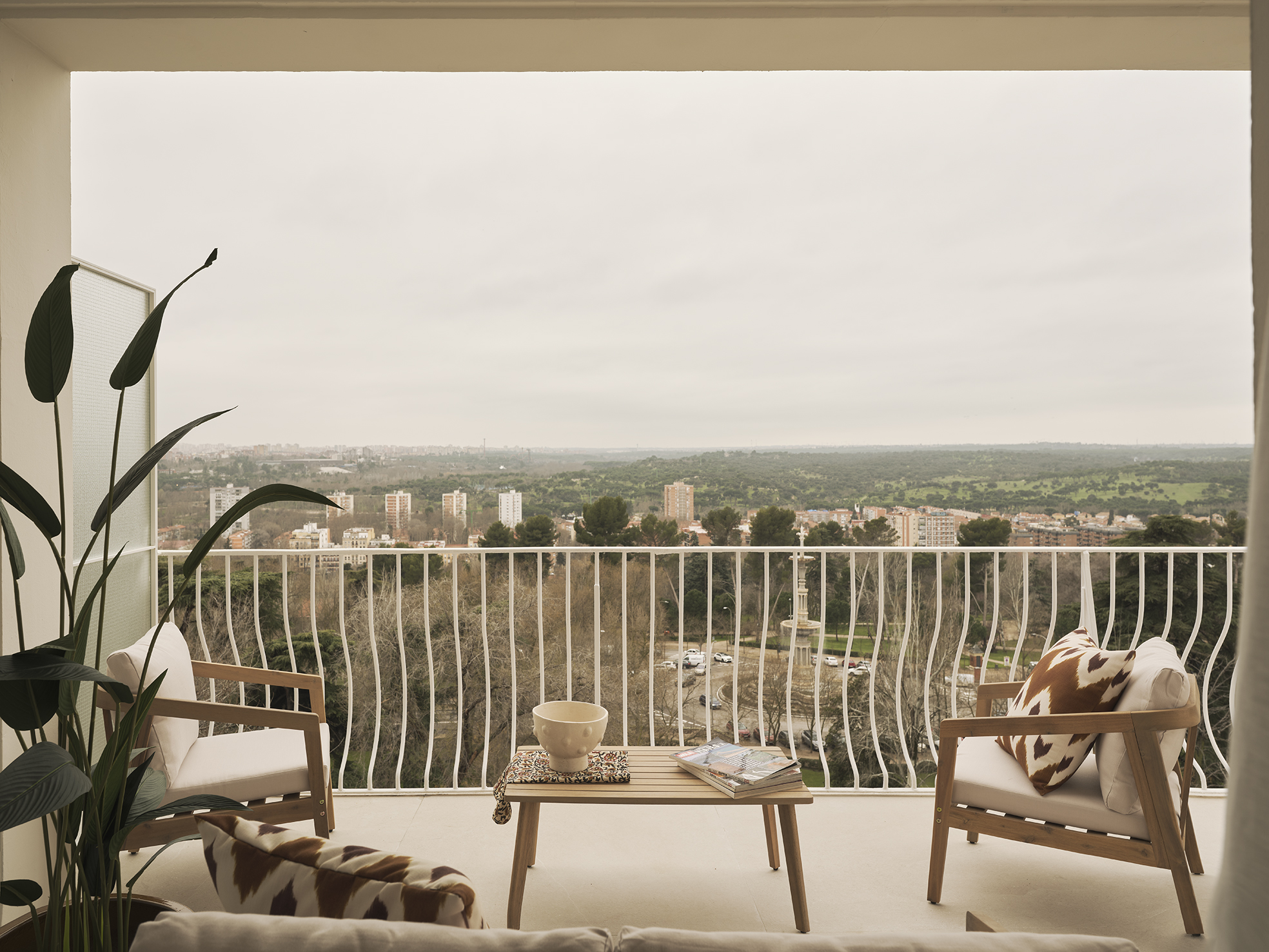 Ésta se divide en varios ambientes, entre los que encontramos un gran comedor, con capacidad para 8 comensales, una distinguida y bien dimensionada sala de estar con dos áreas bien diferenciadas, una de ellas destinada a relajarse y ver la televisión, mientras que la otra es perfecta para reuniones y recibir visitas. Junto al salón encontramos una segunda sala de estar con puertas correderas, permitiendo que quede integrada o independiente, según la ocasión lo requiera. Desde aquí accedemos a una magnífica terraza en esquina, cuyas vistas panorámicas al Parque del Oeste son realmente espectaculares.