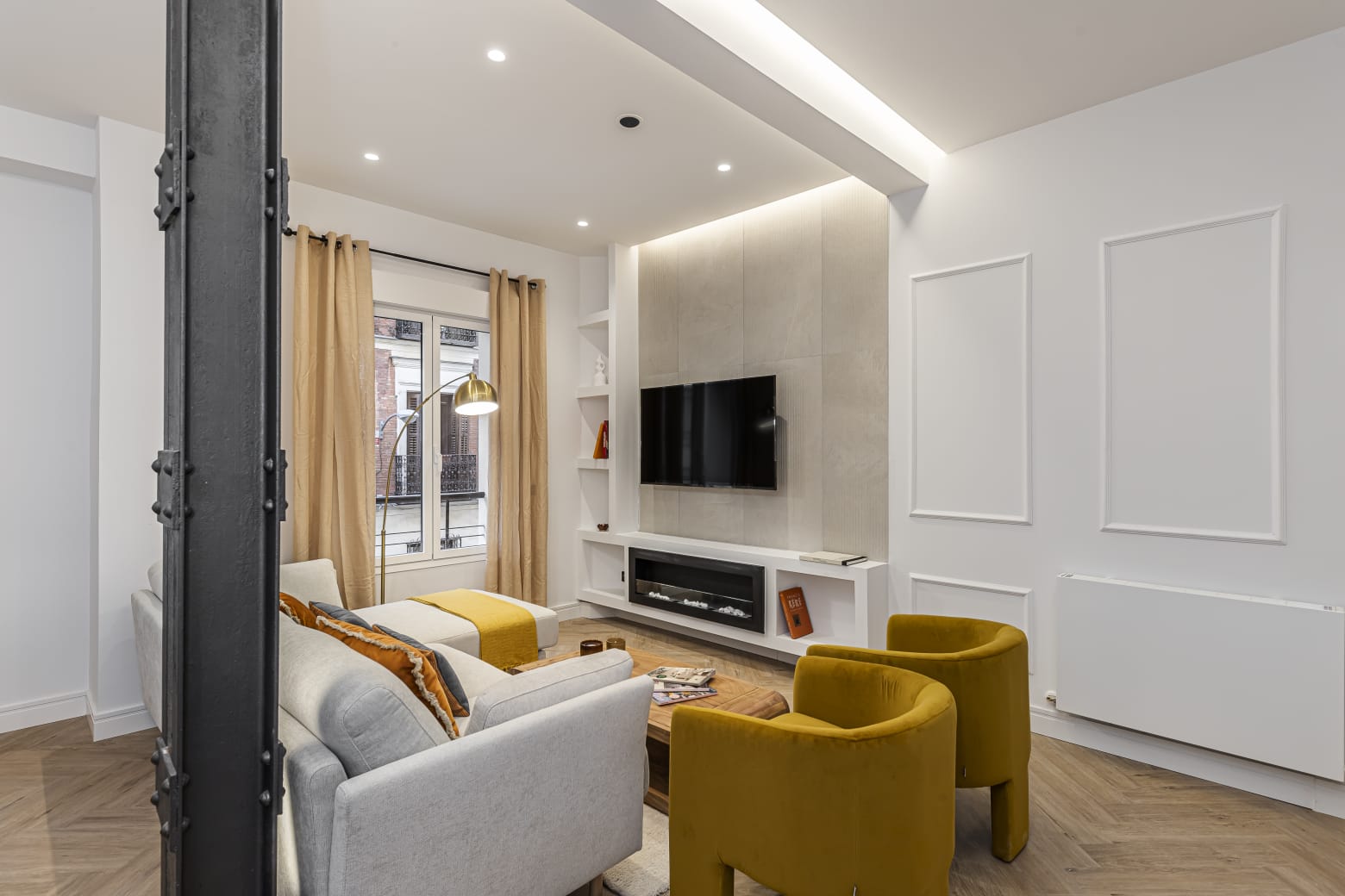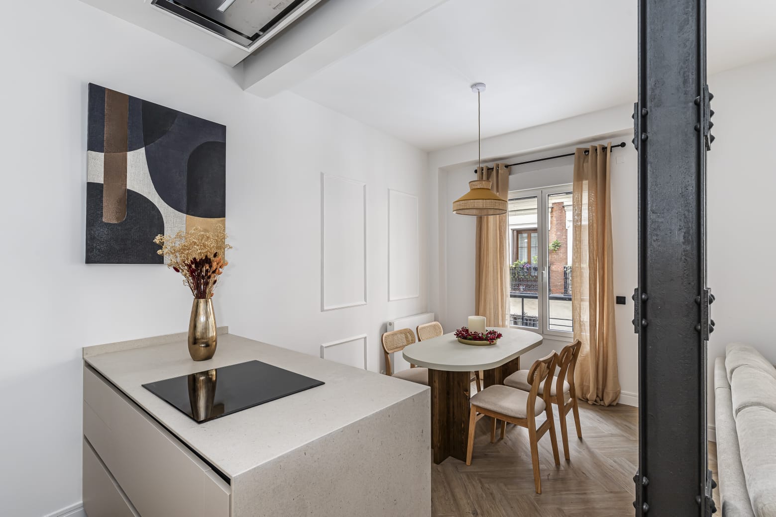 Con una superficie de 101 m² y una distribución muy práctica y conveniente, esta vivienda de 3 dormitorios y 2 cuartos de baño completos ofrece un hogar ideal para quienes buscan residir en uno de los barrios más exclusivos y demandados de Madrid. Está completamente reformada y amueblada y destaca por su elegante proyecto de interiorismo.