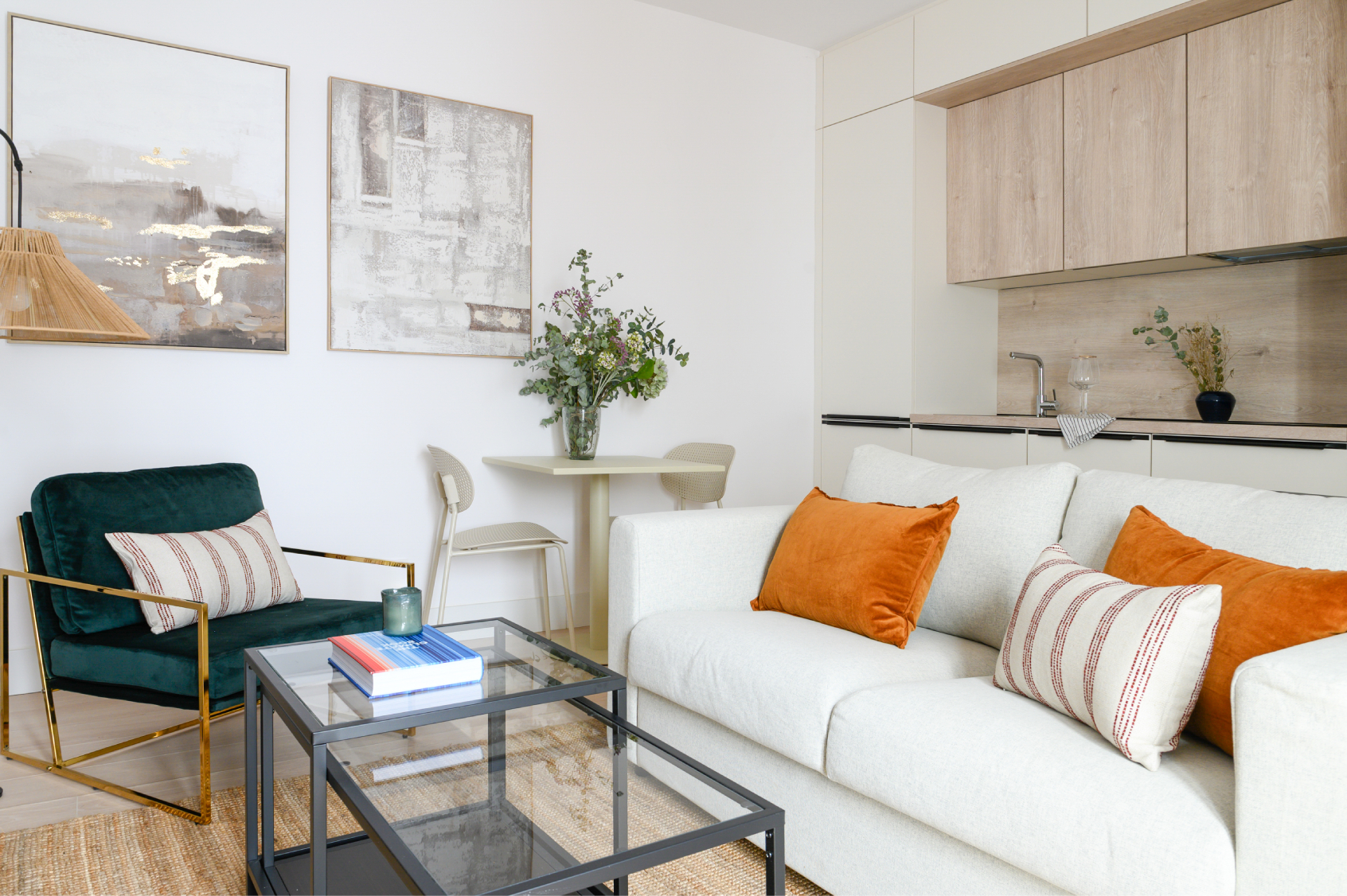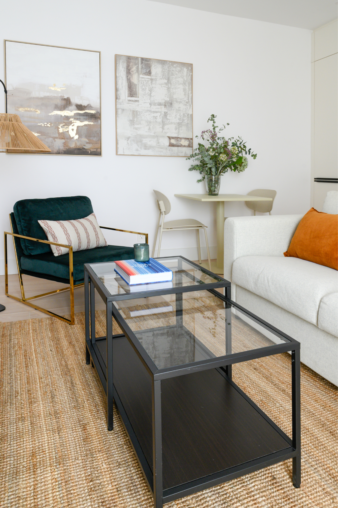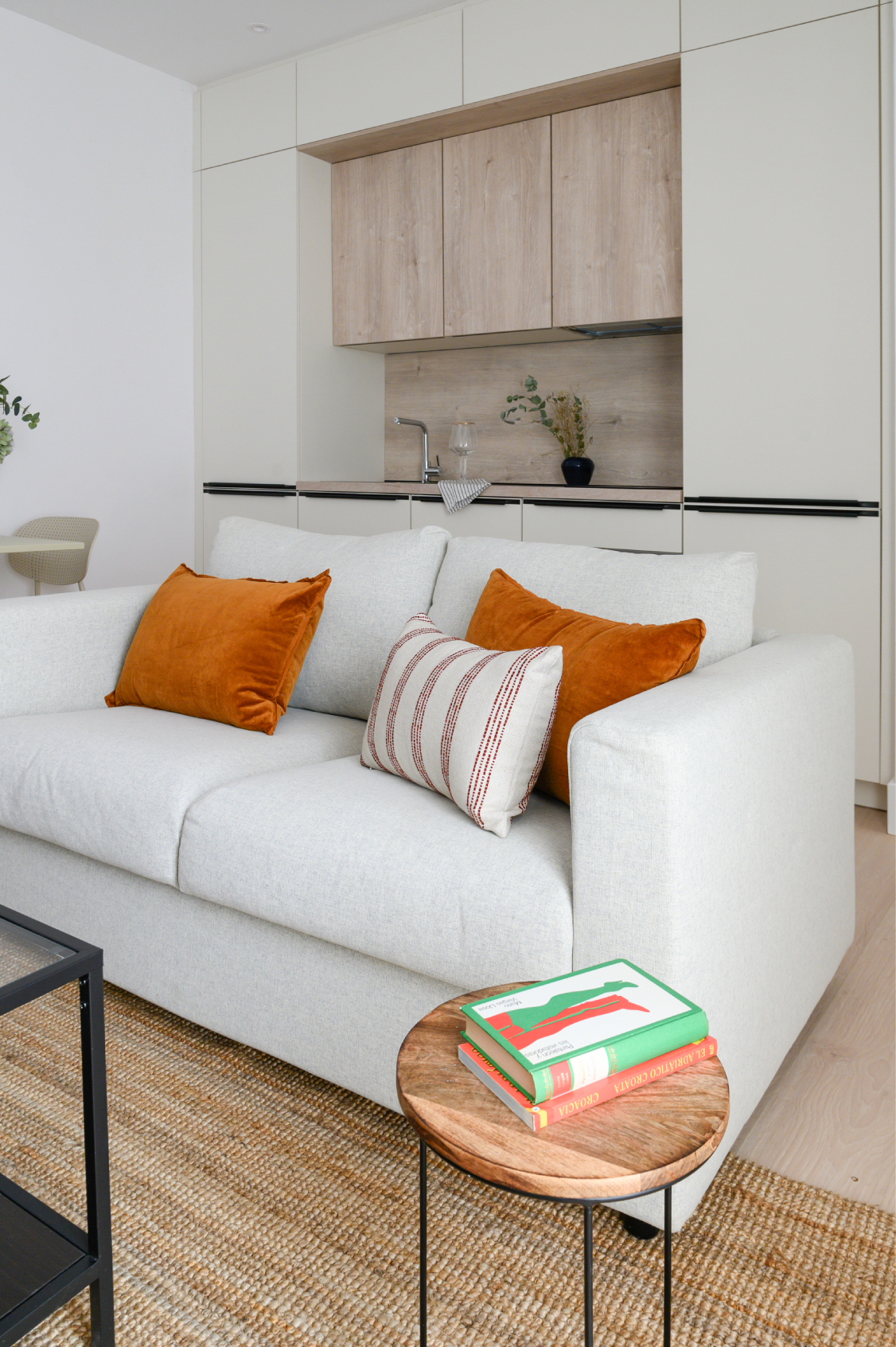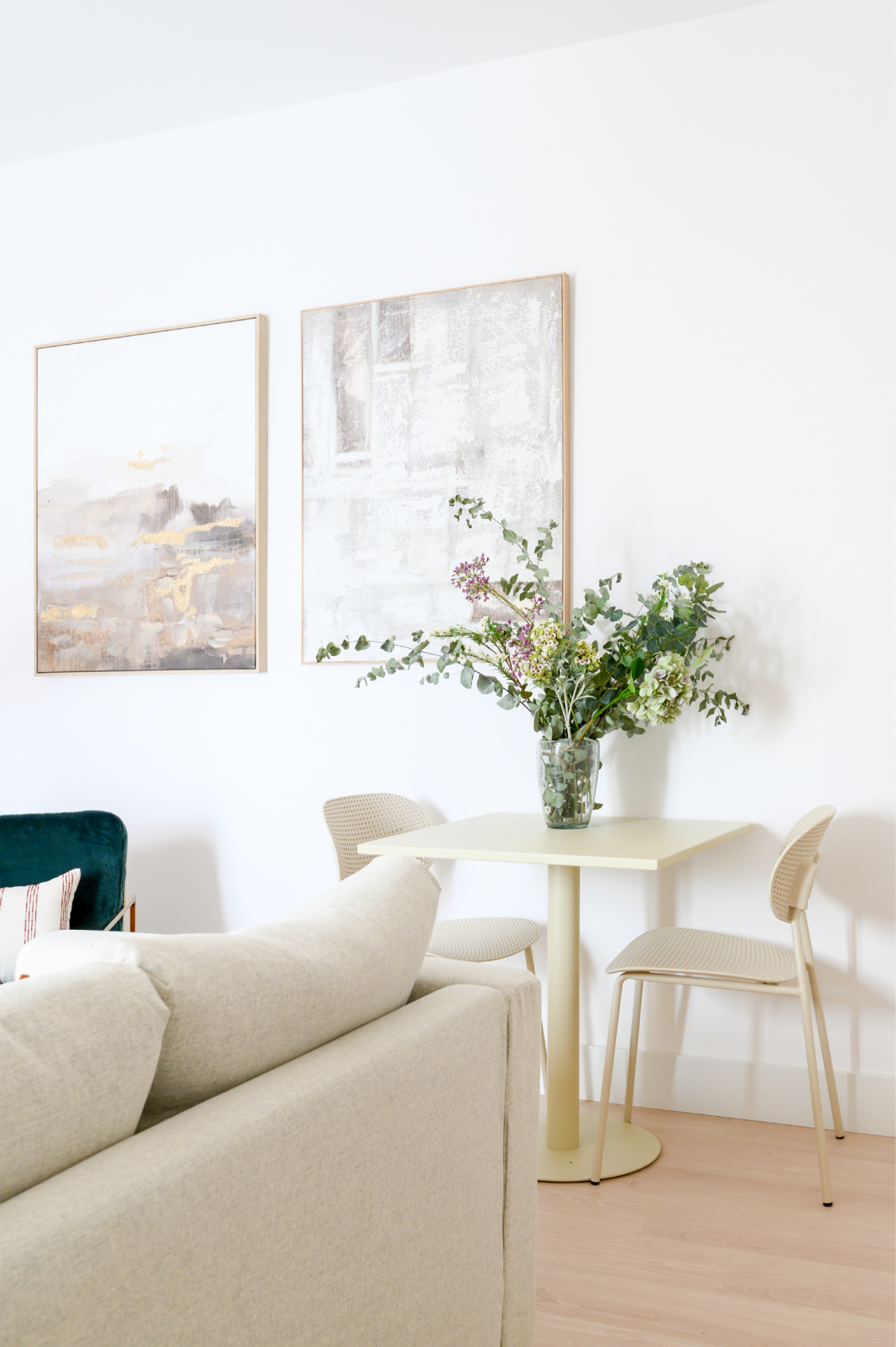 El apartamento se ubica en la primera planta del edificio y su proyecto de interiorismo ha aprovechado al máximo sus 45 m2 de superficie.