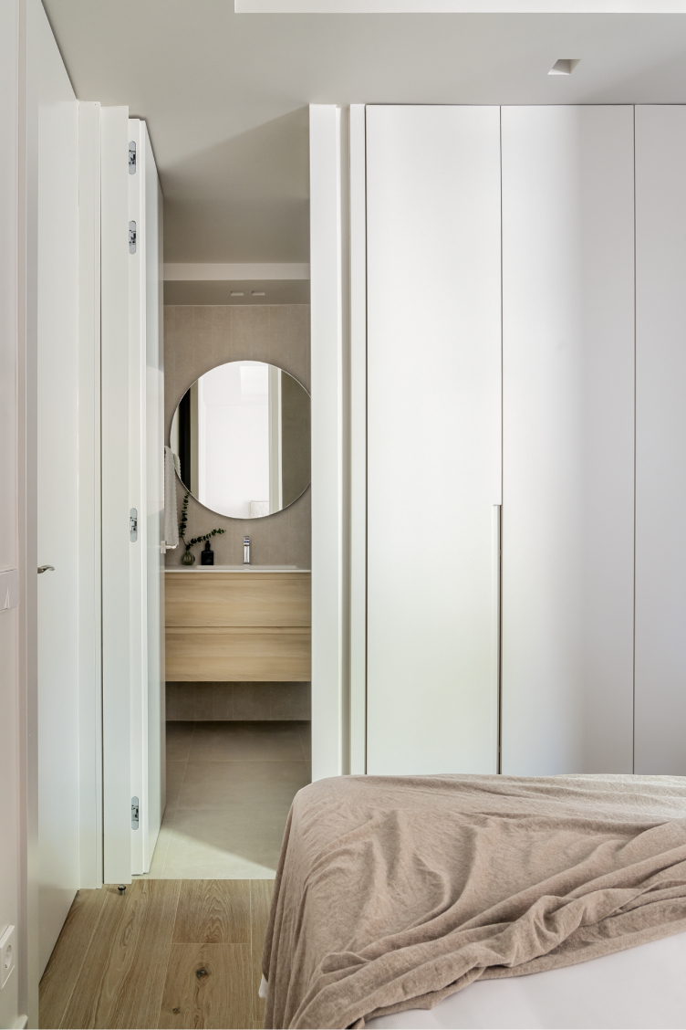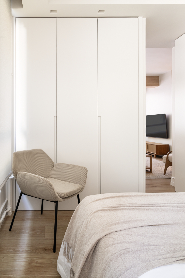 El apartamento cuenta con dos luminosos dormitorios dobles, uno de ellos con cuarto de baño en suite. Ambos dormitorios están equipados con camas matrimoniales y armarios empotrados, ofreciendo gran capacidad de almacenamiento.
