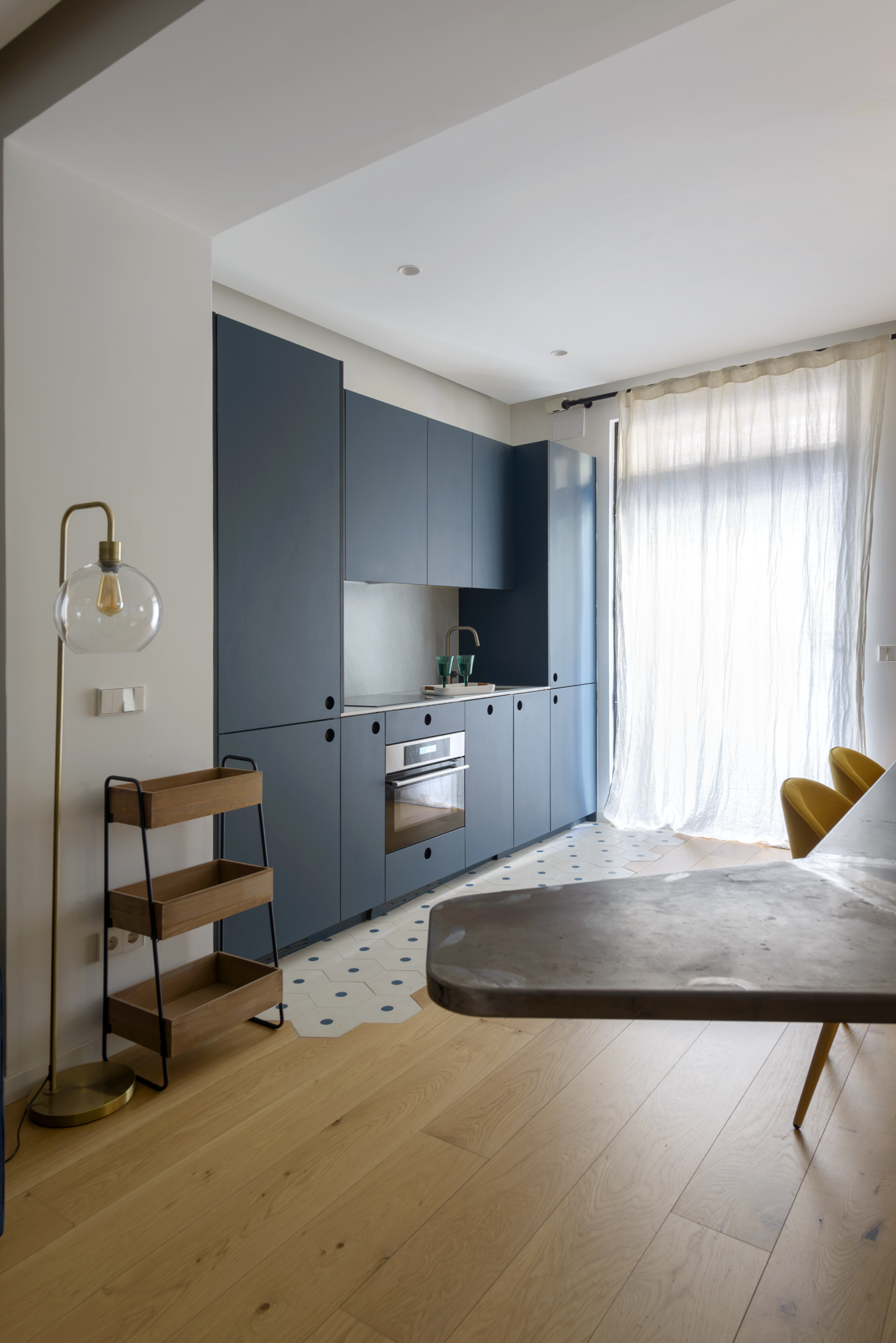 Con una superficie de 66 m2, la vivienda ha sido completamente reformada y amueblada, y se distribuye en dos plantas. Accedemos al apartamento por la planta superior, donde encontramos la cocina, la cual ha sido equipada con grande y pequeño electrodoméstico así como variado menaje. Una mesa alargada acompañada de dos sillas completa la estancia.