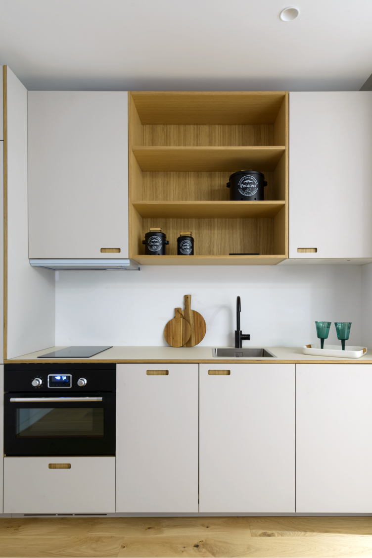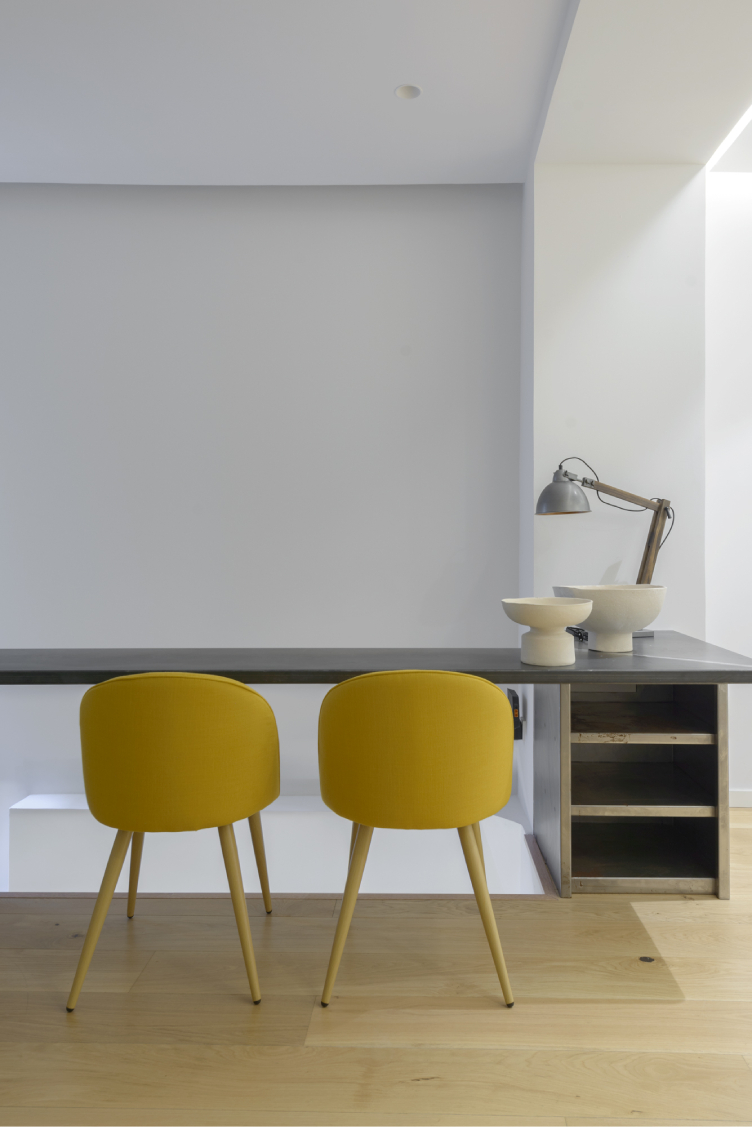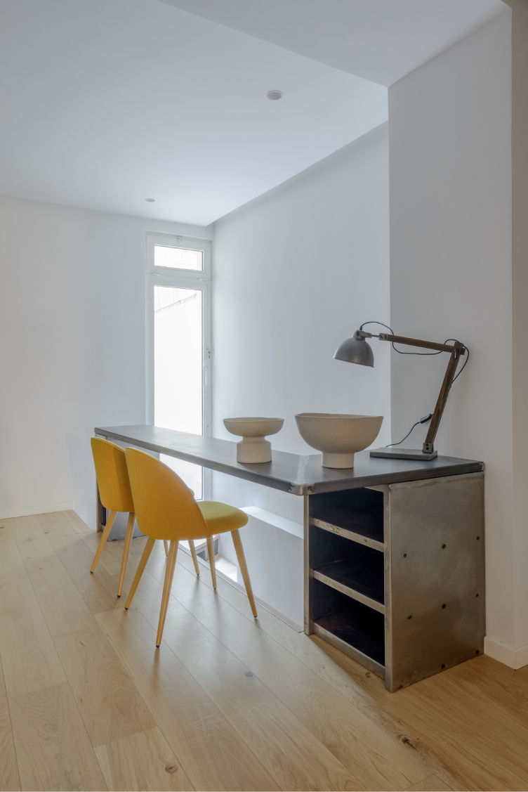 A continuación está el salón, con una acogedora zona de estar y una práctica mesa alargada perfecta para utilizarla como zona de estudio o trabajo.