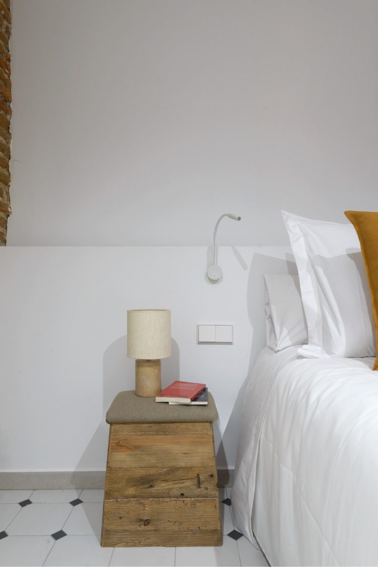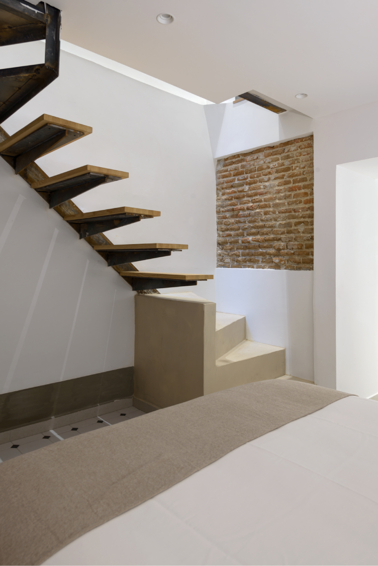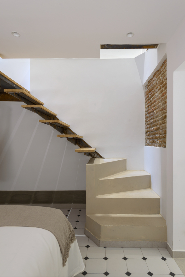 Desde aquí, una escalera nos conduce al piso inferior, donde se ubica el dormitorio, que dispone de cama doble, un cuarto de baño en suite y una amplia zona de vestidor.