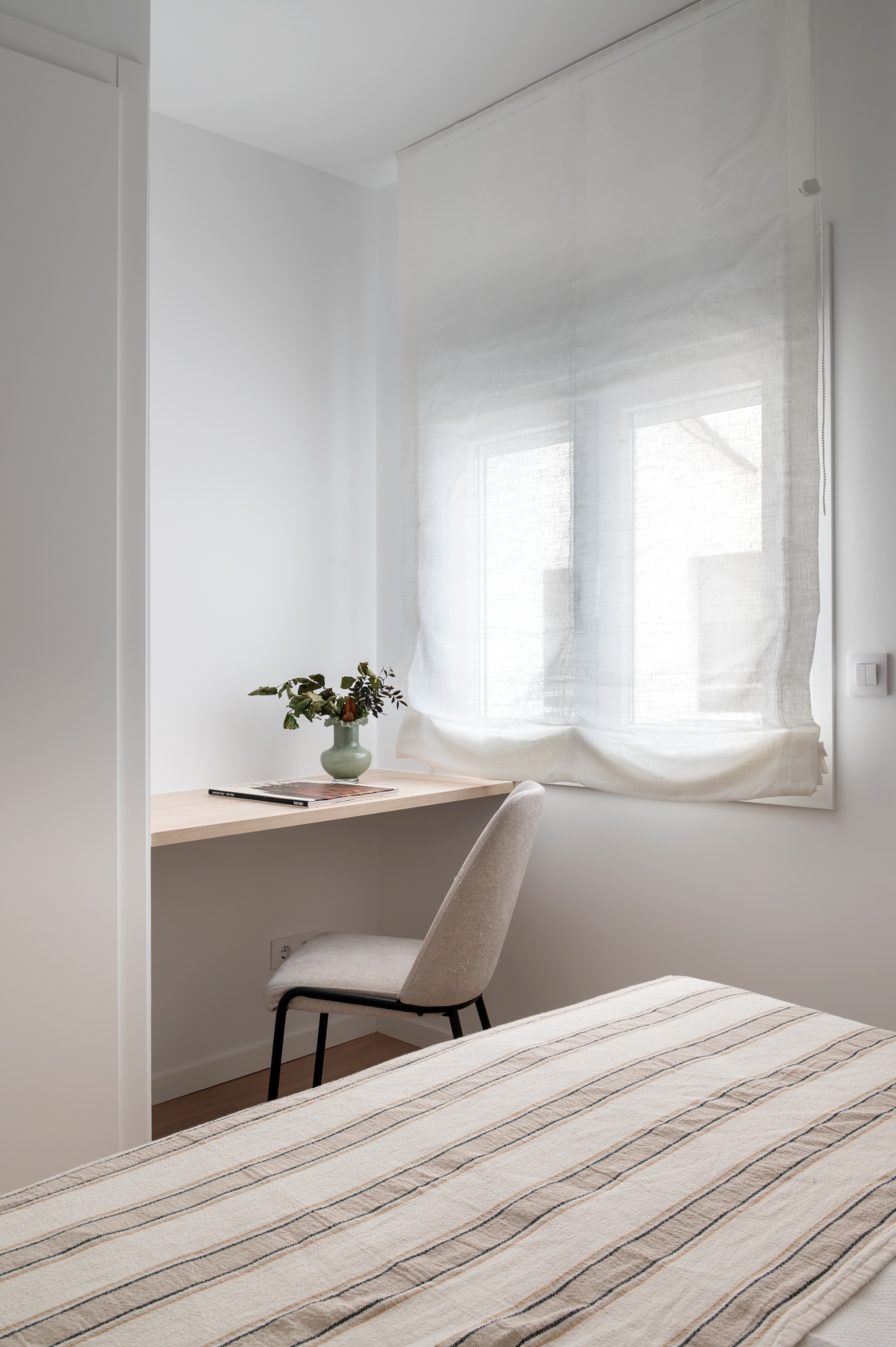 The 3 bedrooms have a double bed, built-in wardrobes and a practical desk area, ideal for teleworking or studying with natural light.